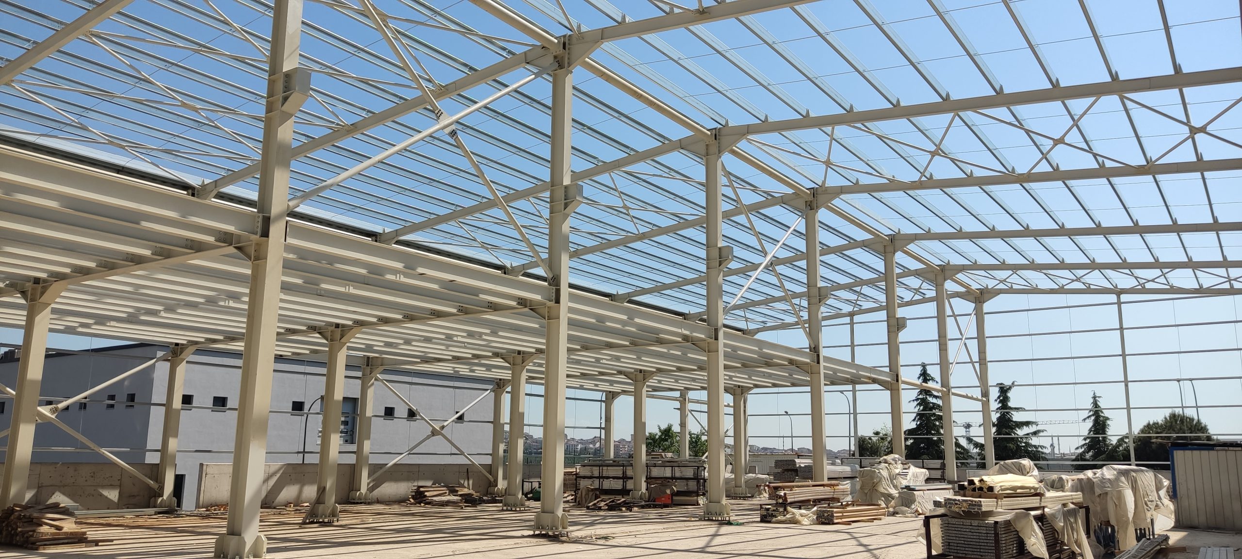 Çift Katlı Çelik Çatılar: Büyük ve karmaşık yapıların yükünü taşıyacak şekilde tasarlanır.